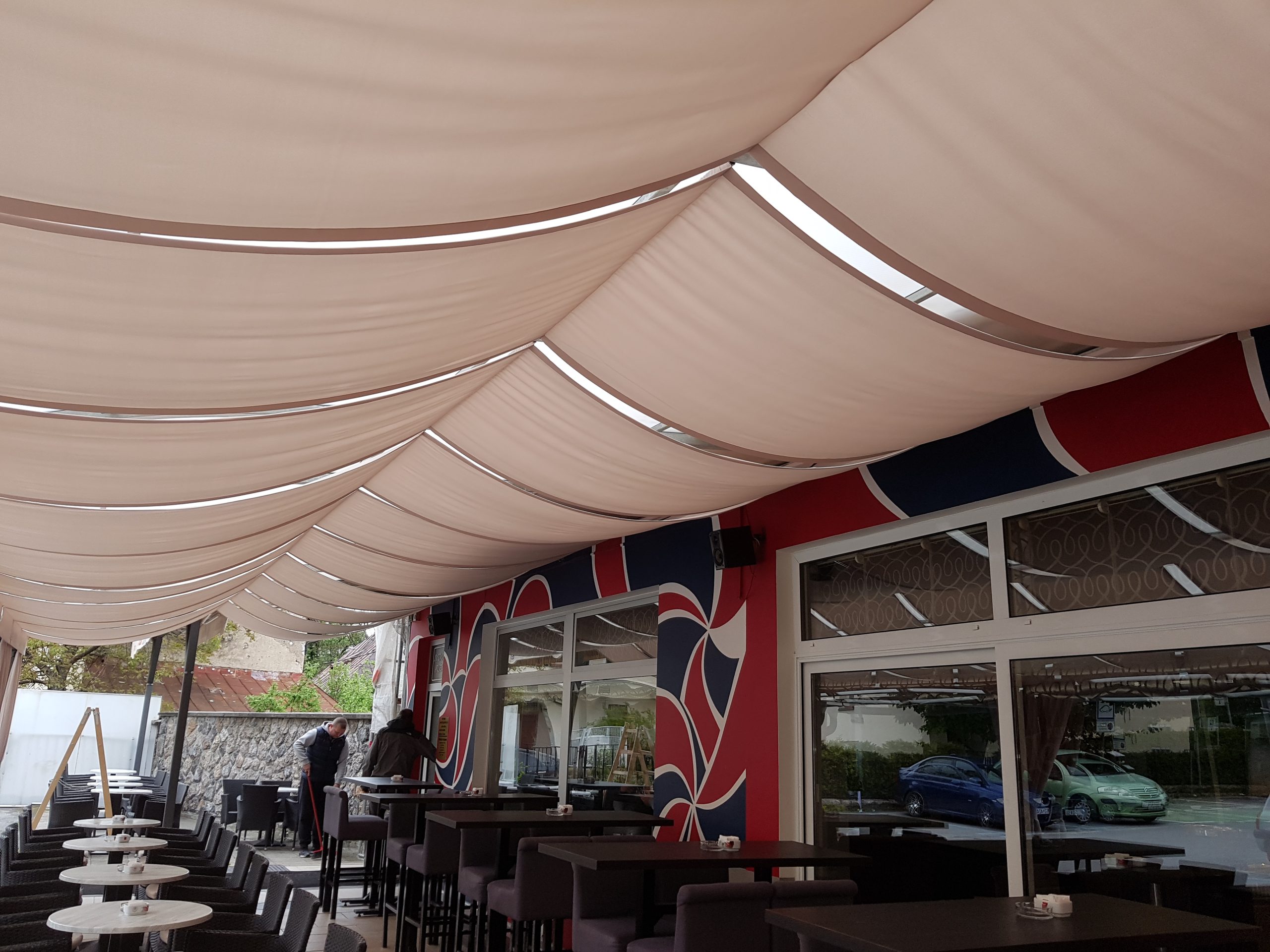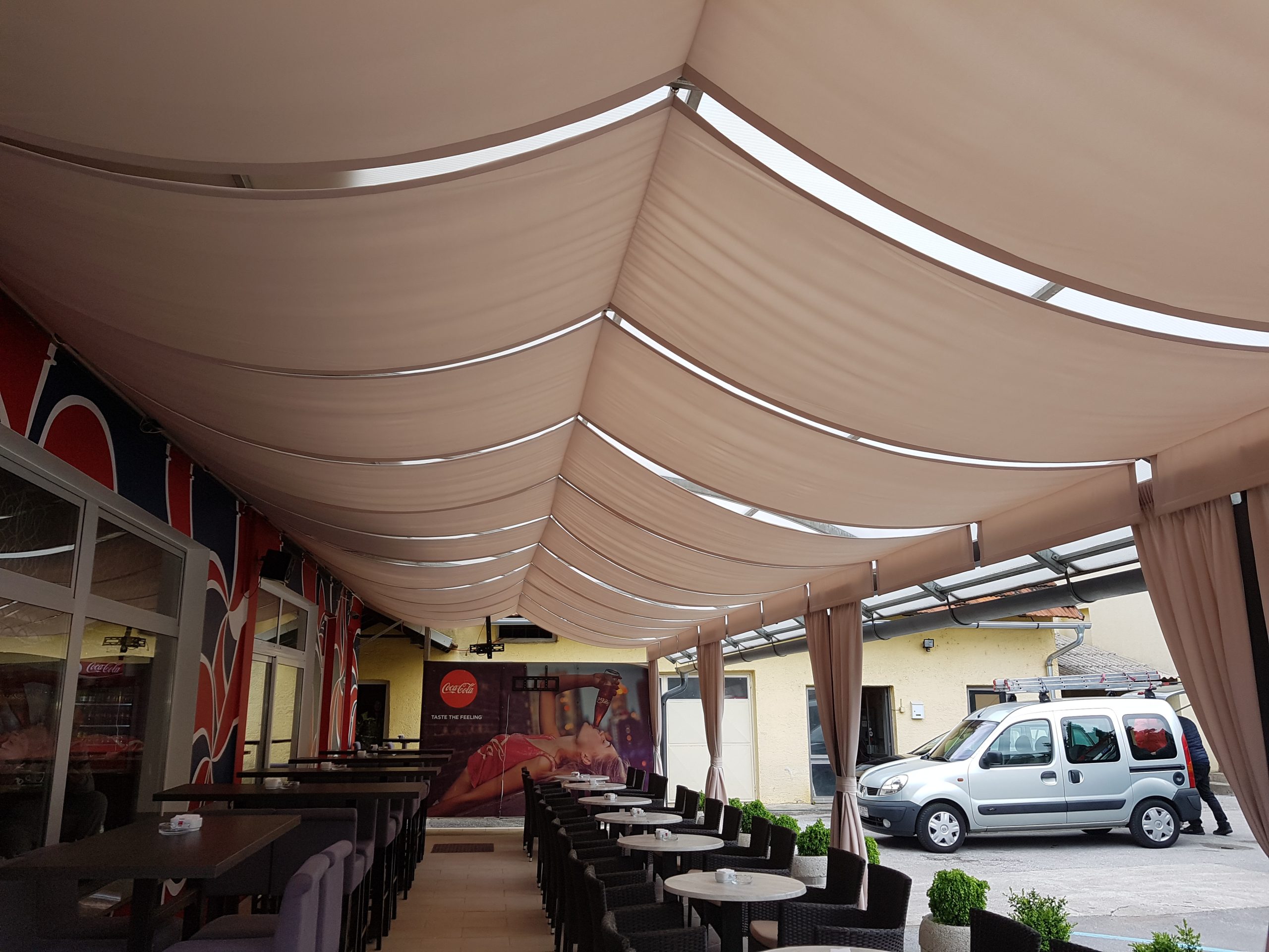 Dekorativna tekstilna jedra idealna su za prostore gdje želite stvoriti mekšu, fluidnu atmosferu. Postavljaju se u blagim valovima ili zategnutim linijama, a mogu se ugraditi na kose stropove, galerije ili prostore s naglašenim arhitektonskim detaljima. Izrađena su od laganih, prozračnih materijala koji pružaju meko filtriranje svjetla i stvaraju vizualnu dinamiku.