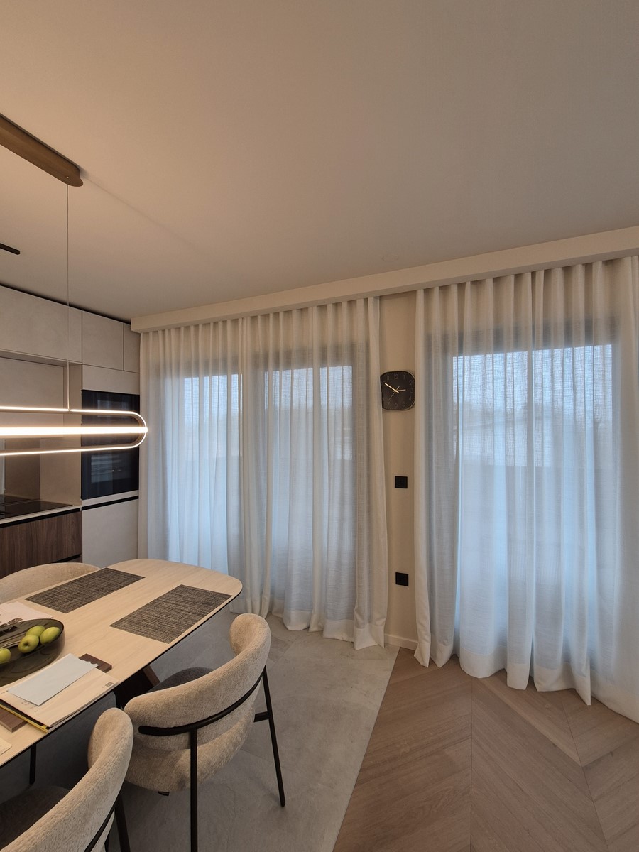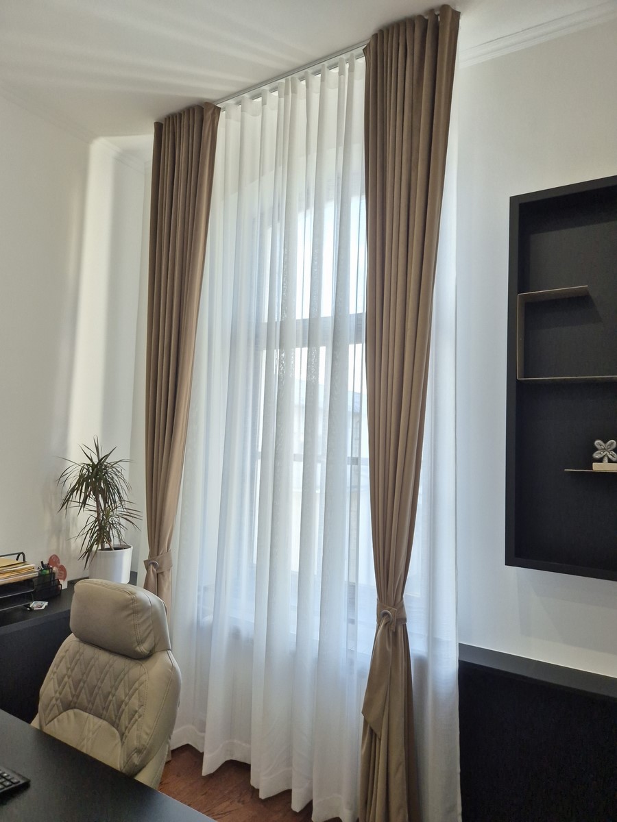 Dostupne su u širokom rasponu boja – od nježnih neutralnih tonova do sofisticiranih tamnijih nijansi – kao i različitim teksturama, uzorcima i gustoćama tkanja. Zavjese su prilagođene ugradnji na karniše, aluminijske vodilice ili dekorativne garnišne, ovisno o željenom vizualnom efektu.